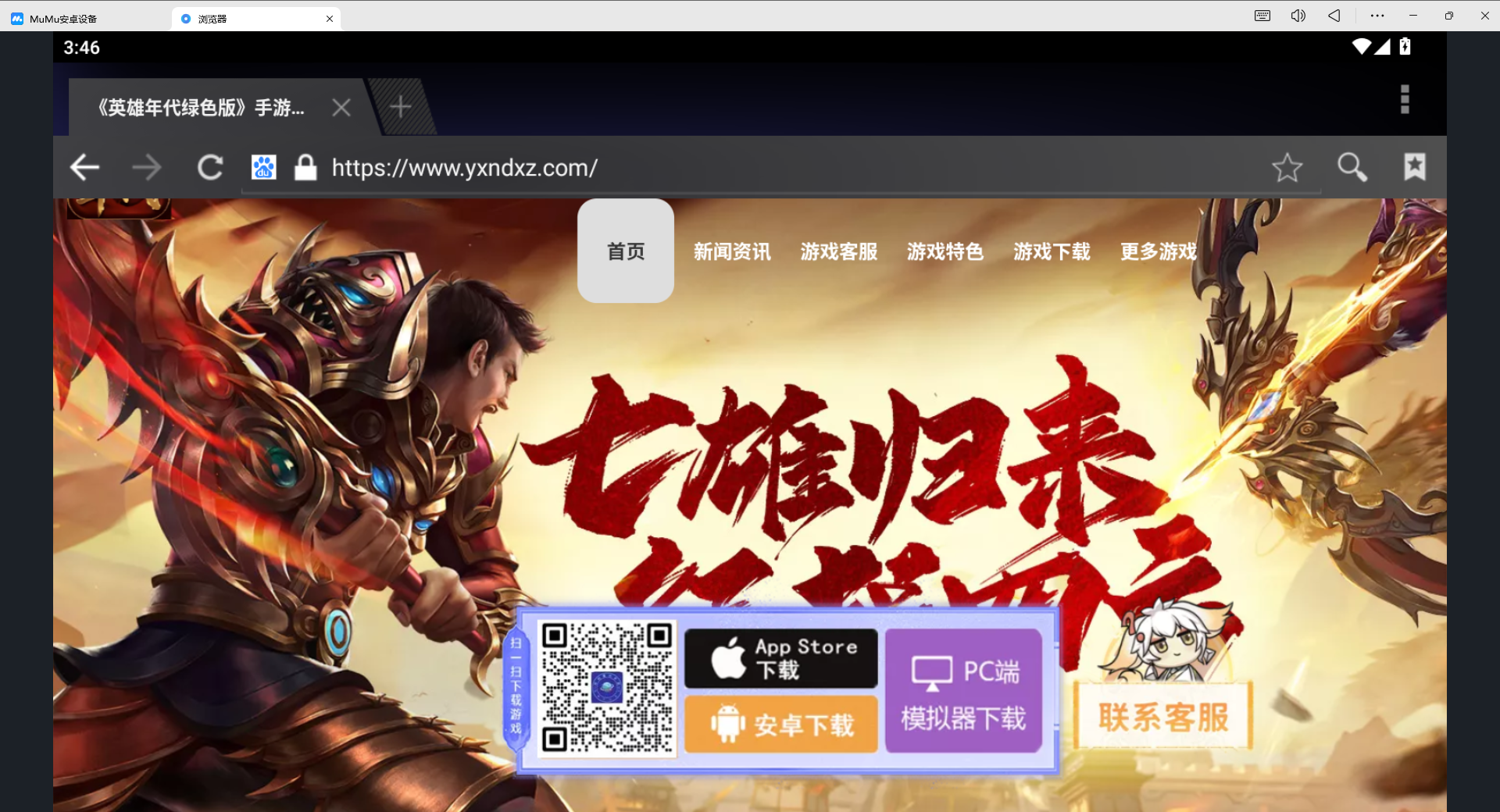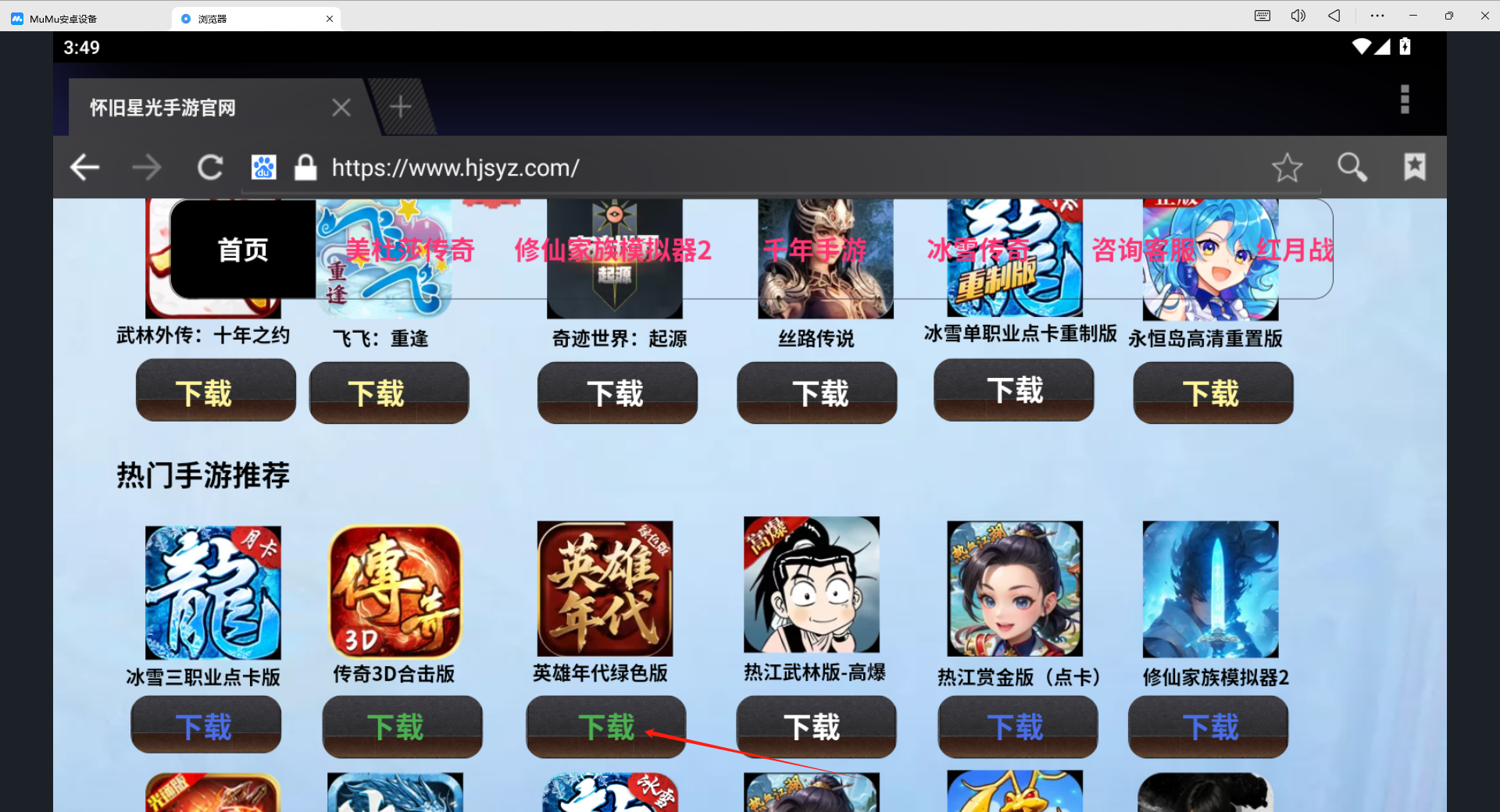 方法一:成功安装 MuMu 模拟器后,打开模拟器,在其内置的浏览器地址栏中输入《英雄年代绿色版》的官网地址www.yxndxz.com,或者宣传网站怀旧星光手游官网hjsyz.com。进入网站后,找到 “安卓下载” 按钮并点击,此时游戏会自动下载并安装到模拟器中。