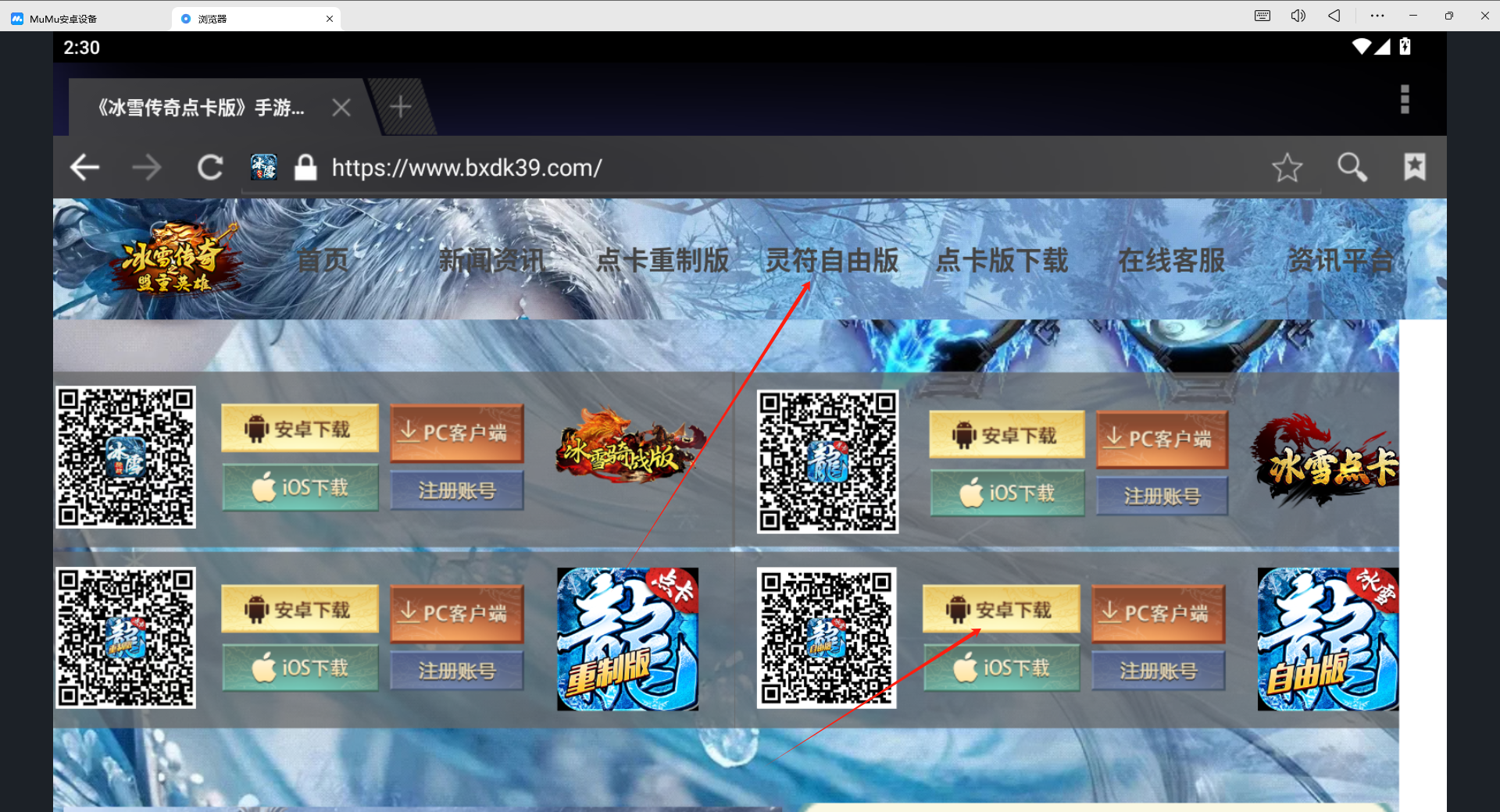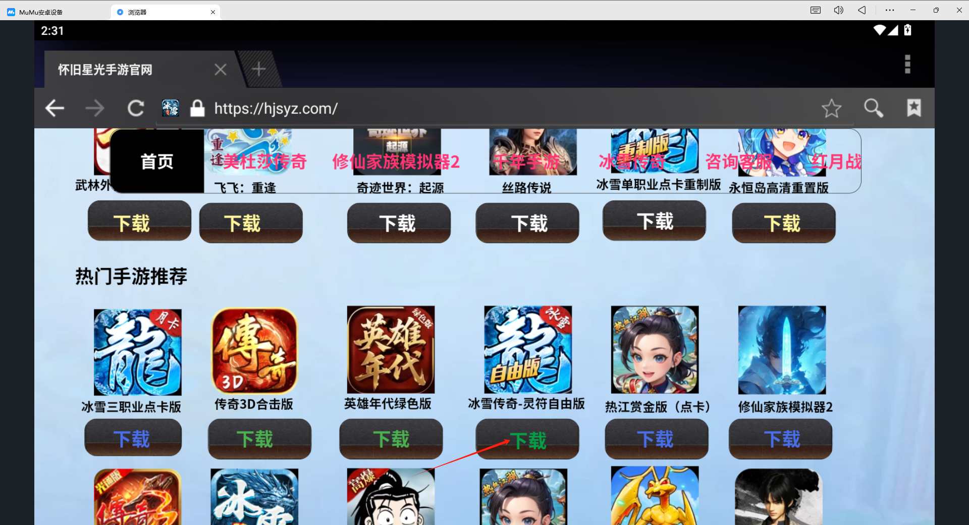 打开安装好的 MuMu 模拟器,在其界面中找到内置浏览器并打开。在浏览器的地址栏中输入《冰雪传奇灵符自由版》的官网地址www.bxdk39.com,或者搜索《冰雪传奇灵符自由版》宣传运营网站怀旧星光手游官网hjsyz.com。进入网站后,点击安卓下载按钮,游戏安装包会自动下载,下载完成后模拟器将自动进行安装。