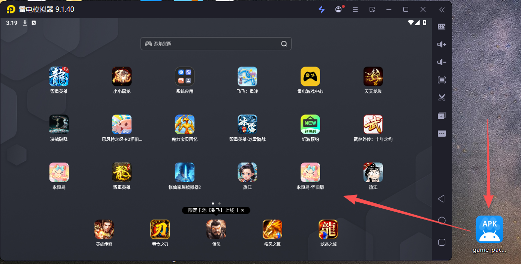 打开雷电模拟器后,在模拟器的桌面或应用列表中找到 “浏览器” 图标(通常为常见的浏览器标识),点击打开内置浏览器。在浏览器的地址栏中输入《决战破晓》官方网站地址jzpx.xmslcs.cn或者决战破晓宣传平台怀旧星光手游官网hjsyz.com,按下回车键进入官网。进入官网后,找到 “安卓下载” 按钮并点击,此时模拟器会自动识别下载请求,开始下载游戏安装包,下载完成后将自动触发安装,无需额外操作。若你习惯先将安装包保存到电脑,可在电脑浏览器中访问jzpx.xmslcs.cn决战破晓手游官网或者决战破晓宣传平台怀旧星光手游官网hjsyz.com,点击 “安卓下载” 将《决战破晓》的 APK 安装包下载到电脑桌面。回到雷电模拟器界面,直接将电脑上下载好的游戏 APK 安装包拖动到模拟器窗口内,模拟器会立即识别并开始安装游戏,稍等片刻即可完成安装。除了雷电模拟器,MuMu模拟器、夜神模拟器等也是口碑不错的安卓模拟器选择,它们的操作流程MuMu模拟器基本一致: